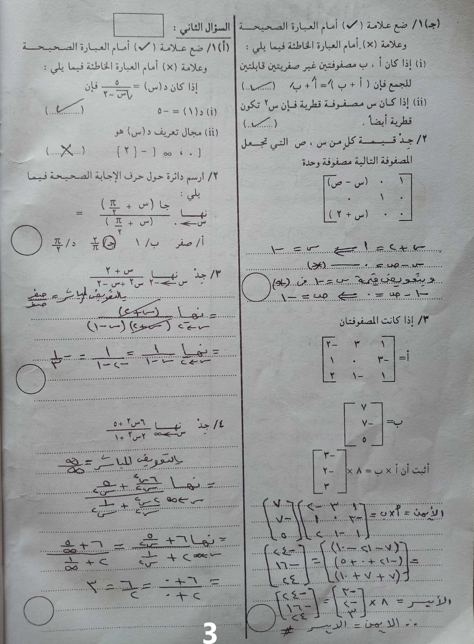الاجابات النموذجية لامتحان الشهادة السودانية 2017 الرياضيات المتخصصة