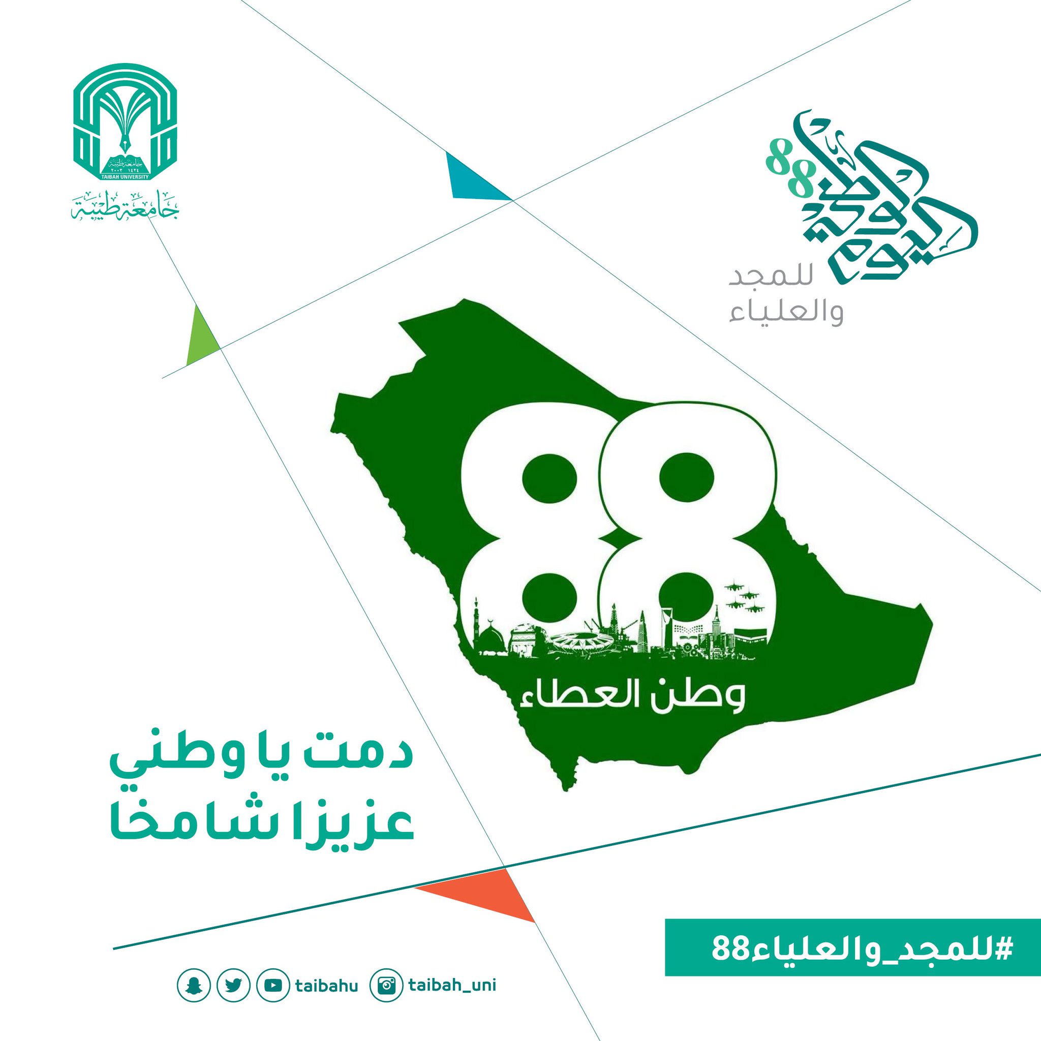 جامعة طيبة Taibah U On Twitter للمجد والعليا88 دمت يا وطني عزيزا شامخا 88 عاما من العطاء دام عزك ياوطن 88 اليوم الوطني88 اليوم الوطني السعودي Https T Co F1b15syojv