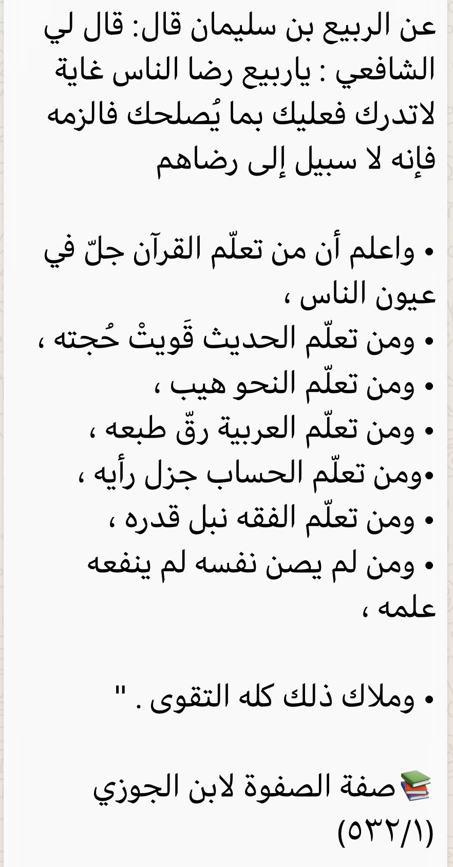 أ د حسن الشمراني Pa Twitter عن الربيع بن سليمان قال قال لي الشافعي ياربيع رضا الناس غاية لاتدرك فعليك بما ي صلحك فالزمه فإنه لا سبيل إلى رضاهم واعلم أن من